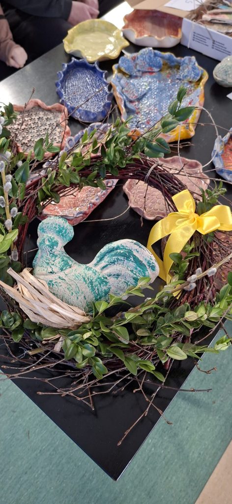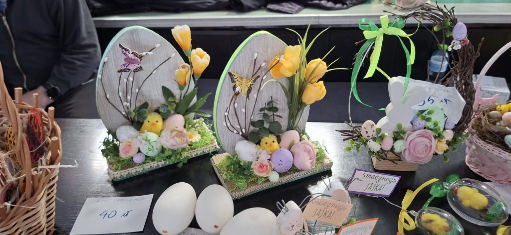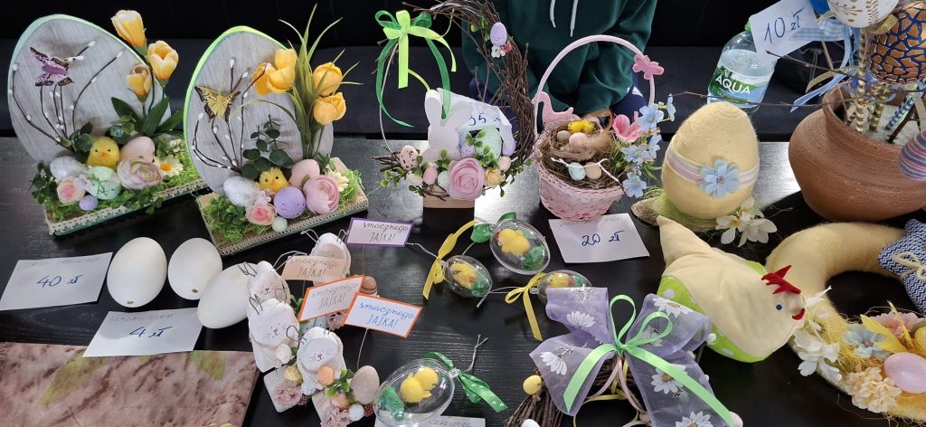 W środę, jak co roku, tuż przed świętami Wielkiej Nocy naszą szkołę odwiedzili uczestnicy warsztatów terapii zajęciowej „Diament” w Słupsku. Przywieźli ze sobą przepiękne, własnoręcznie wykonane prace z drewna, ceramiki, papieru, płótna. Mogliśmy podziwiać stroiki, naczynia ceramiczne, pisanki, kartki okolicznościowe, bieżniki na stół a nawet kompozycje ze świeżych kwiatów. Wszystkie te małe i większe rękodzieła są elementem terapii, która pozwala osobom z niepełnosprawnościami lepiej samodzielnie funkcjonować. Serdecznie dziękujemy i do zobaczenia w grudniu.