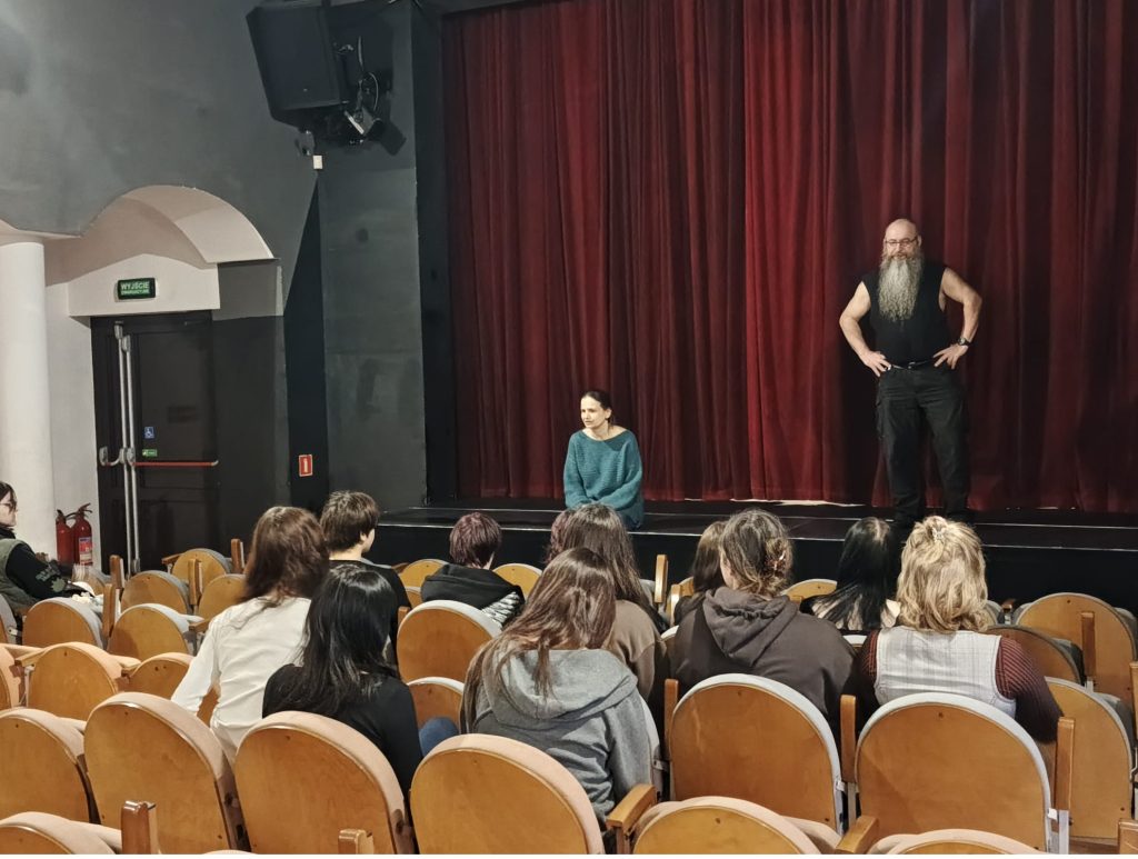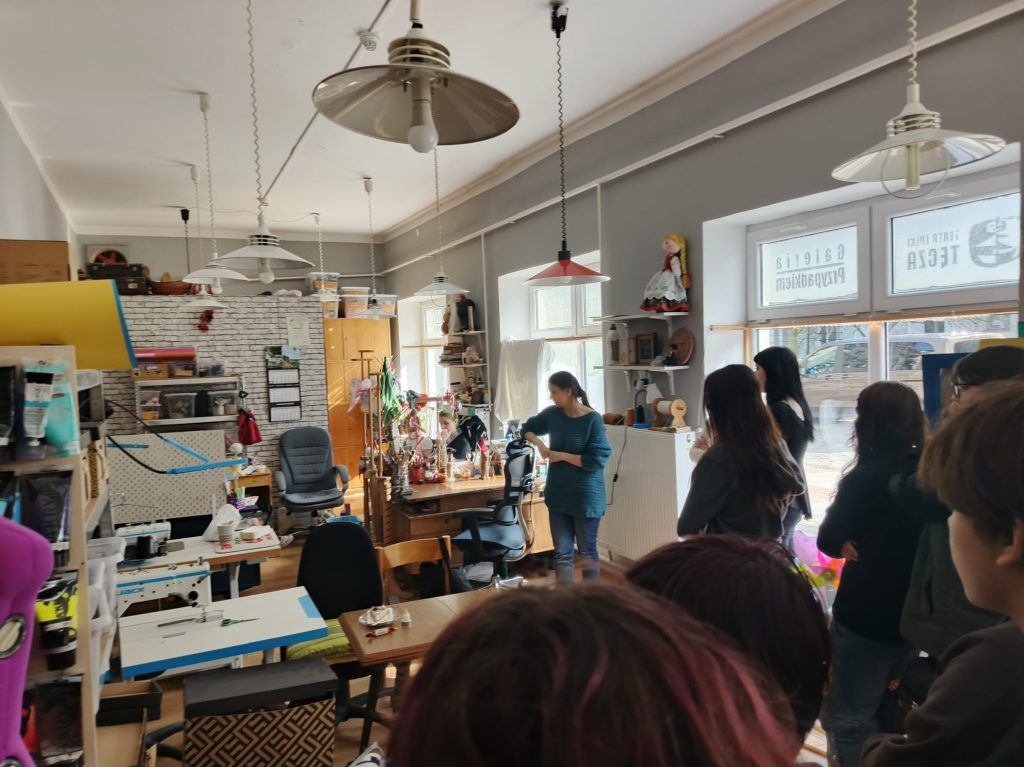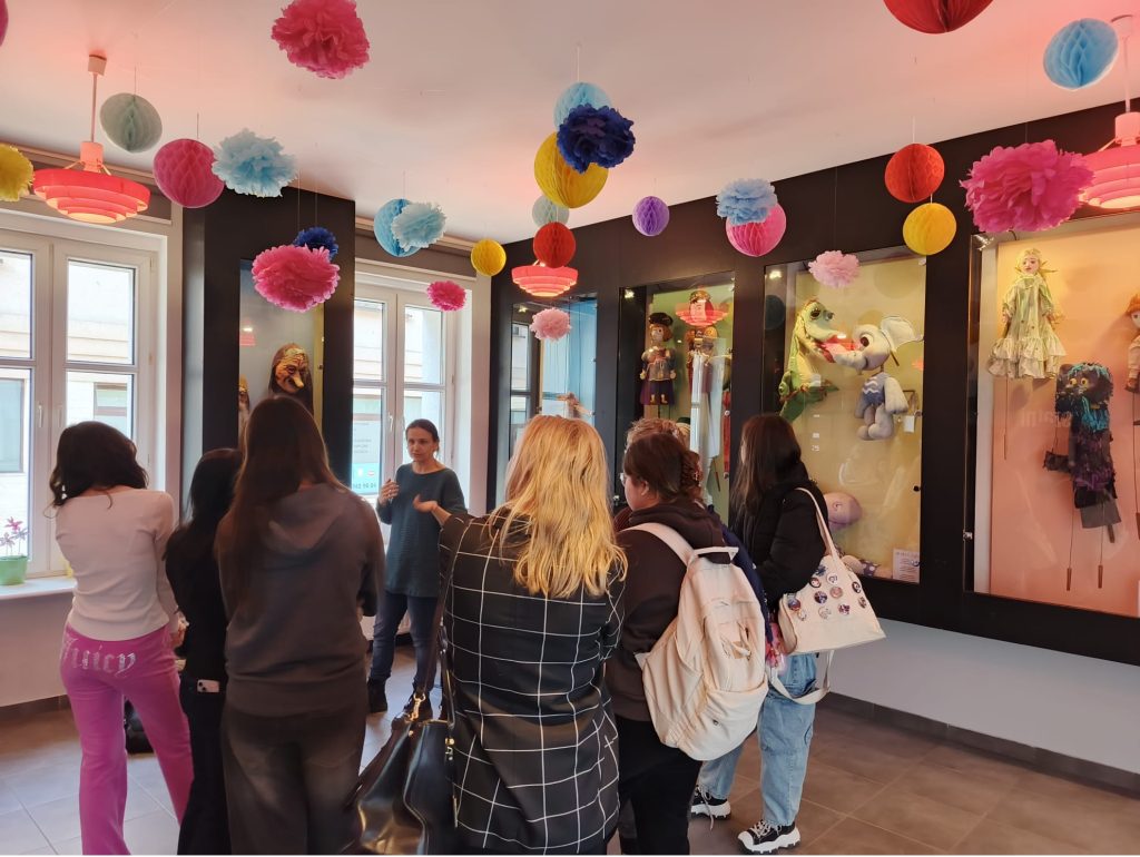 W poniedziałek, 23 marca 2026 r., klasa 3 Liceum Sztuk Plastycznych odwiedziła Teatr Lalki „Tęcza”. Uczniowie nie obejrzeli jednak spektaklu a poznali tajemnice teatru. Ze spotkania z pracownikami teatru dowiedzieli się jak przebiega cały proces: od pomysłu na przedstawienie do jego premiery. Uczniowie weszli na widownię, za kulisy sceny, do pracowni, w których powstają kostiumy, lalki, pacynki, scenografia. W czasie naszej wizyty w teatrze spotkaliśmy uczennice klasy 3 technik reklamy, które właśnie w tym miejscy odbywają praktyki zawodowe. Było to bardzo ciekawe spotkanie, które pozwoliło na poszerzenie naszej wiedzy na temat tego jak funkcjonuje teatr od kulis.